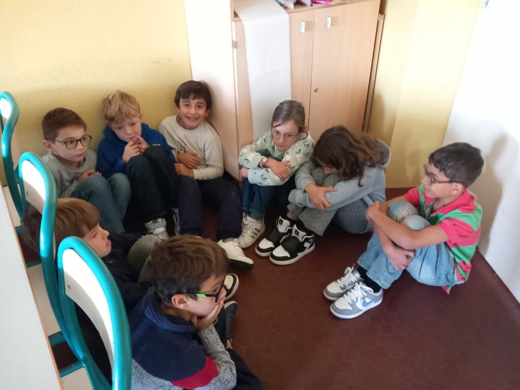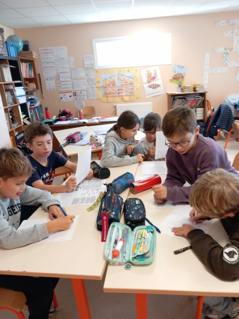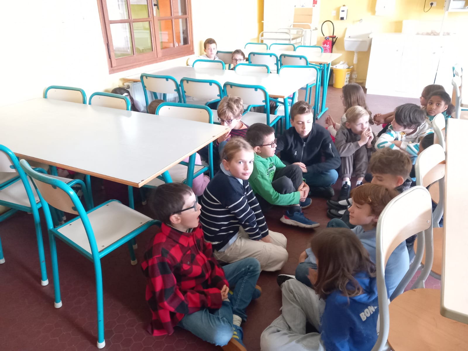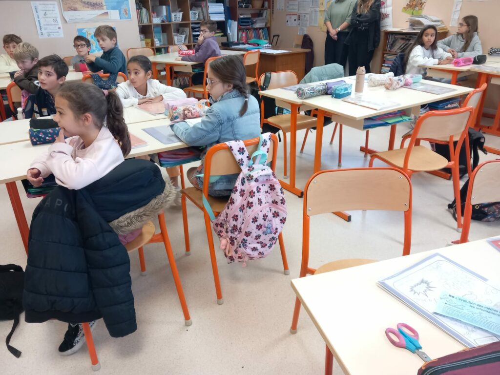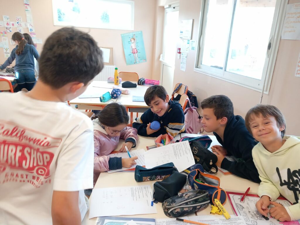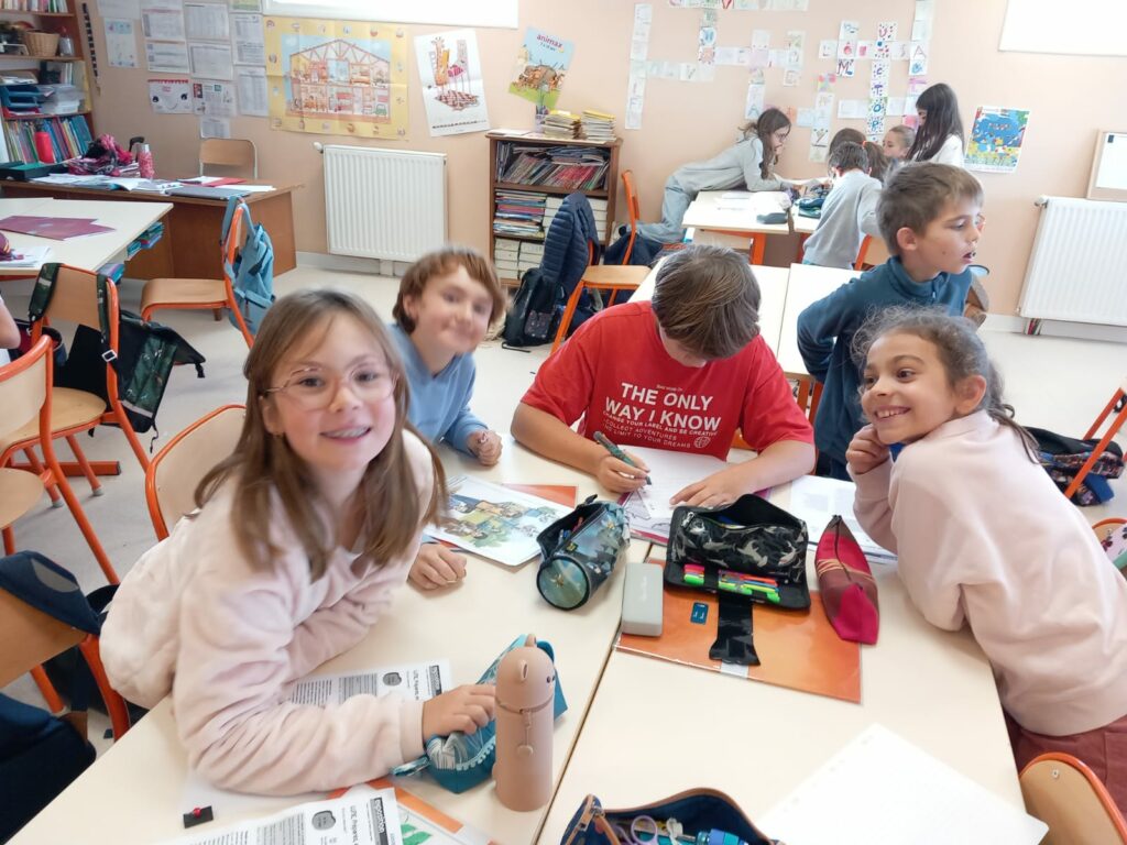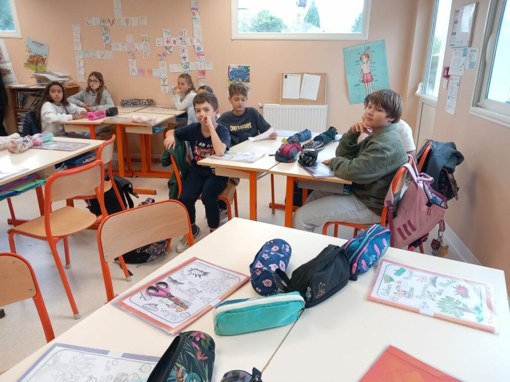 Nous nous sommes répartis dans chaque classe pour la journée, un mélange de CE2, CM1 et CM2.