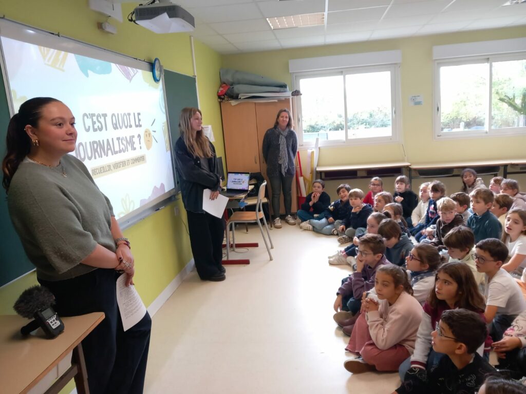 Après la récréation, deux apprenties journalistes nous ont présenté leur métier, une s’appelait Marie et l’autre Emily.Emily s’intéresse au sport et Marie voudrait s’intéresser sur la presse écrite.