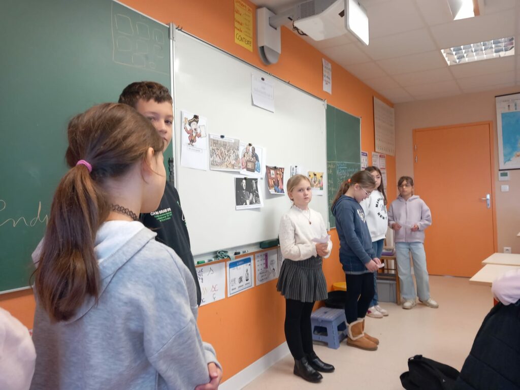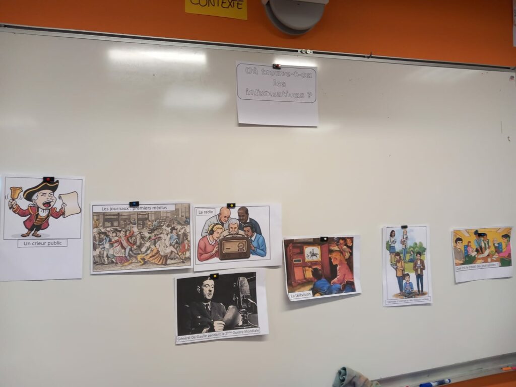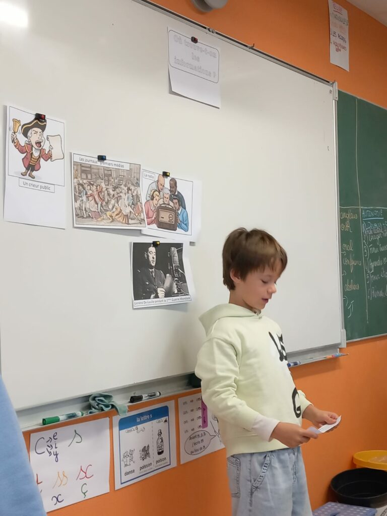 Nous parlons tous du même sujet « les informations ». Par exemple : les CM2 ont présenté « Pourquoi il est important de bien s’informer? », les CM1 « Où trouve-t-on les informations? » et les CE2 « C’est quoi les informations? »