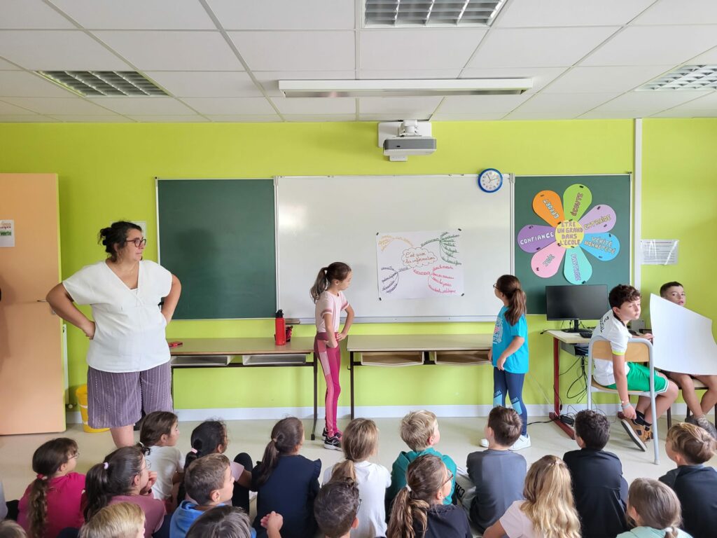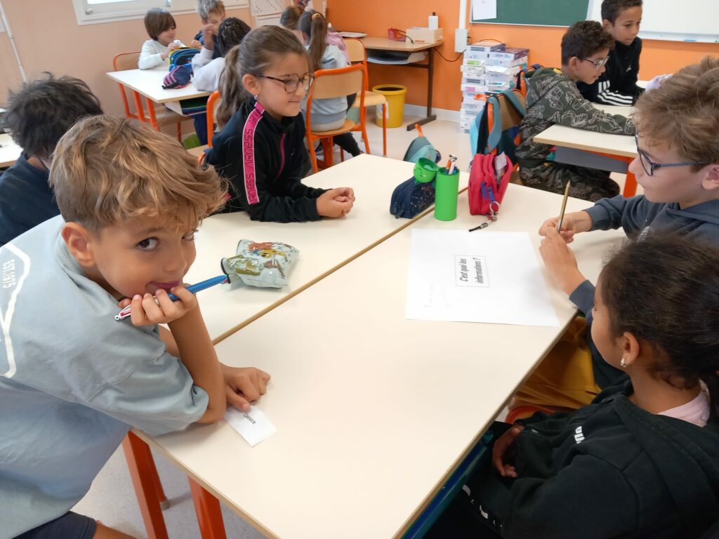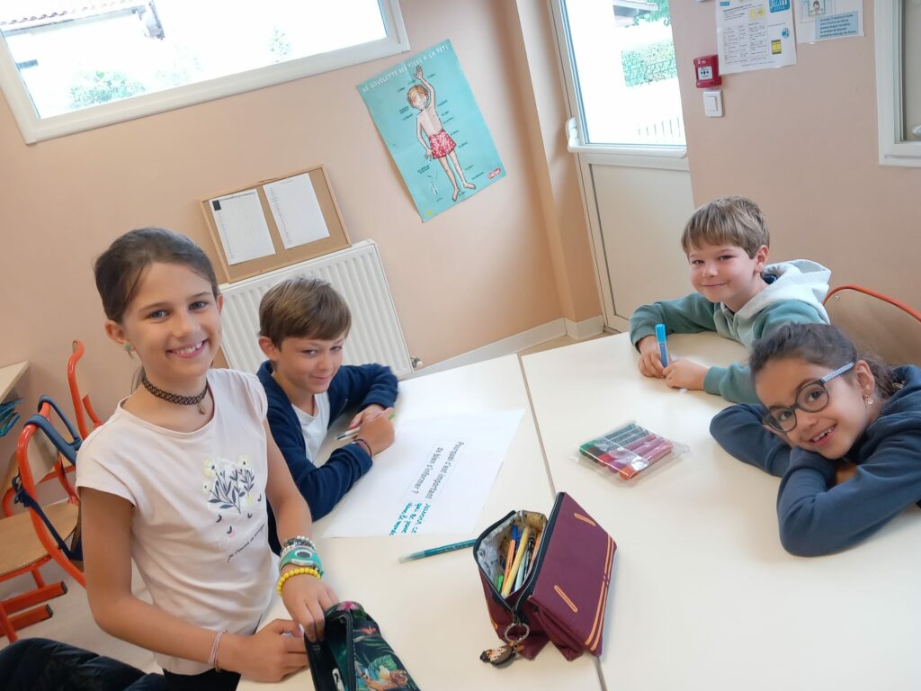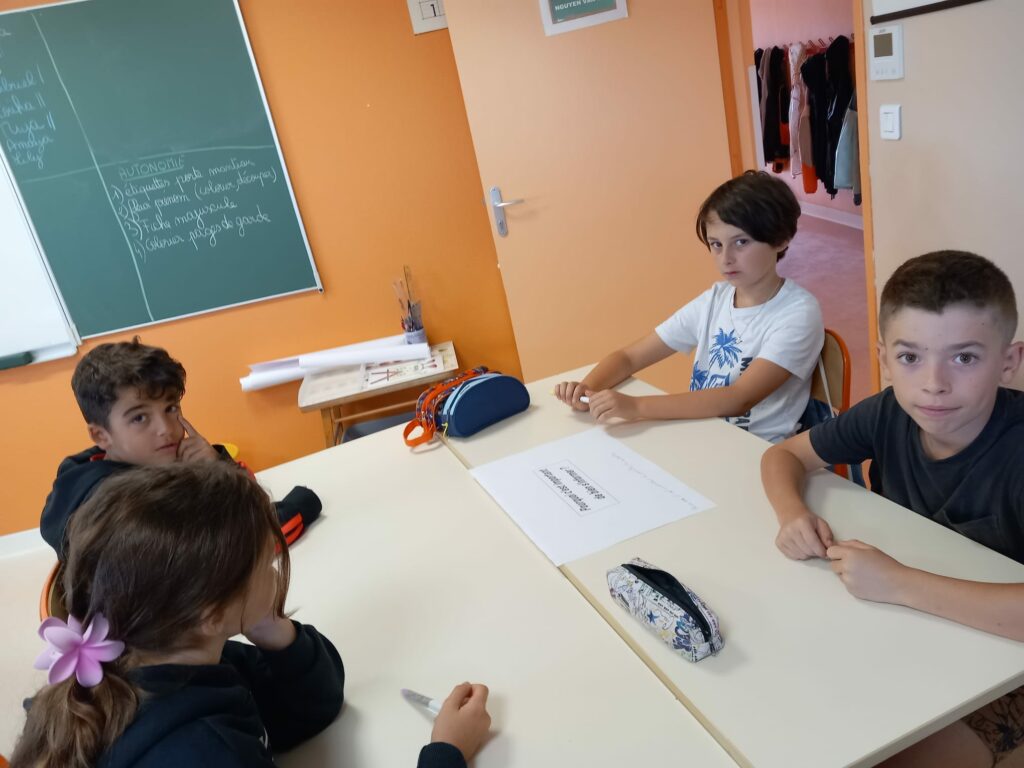 Avant de s’installer en classe, les élèves du cycle 3 se sont regroupés en salle verte pour un temps d’accueil.