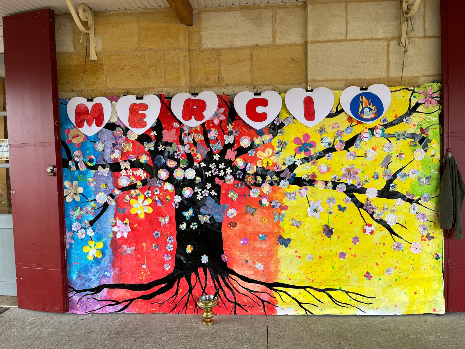 L’après – midi, nous avons fait le remerciement pour la rénovation de la cour envers les sœurs. Nous avons fait un cœur avec toute l’école. Nous avons chanté Ensemble, notre hymne de l’année.