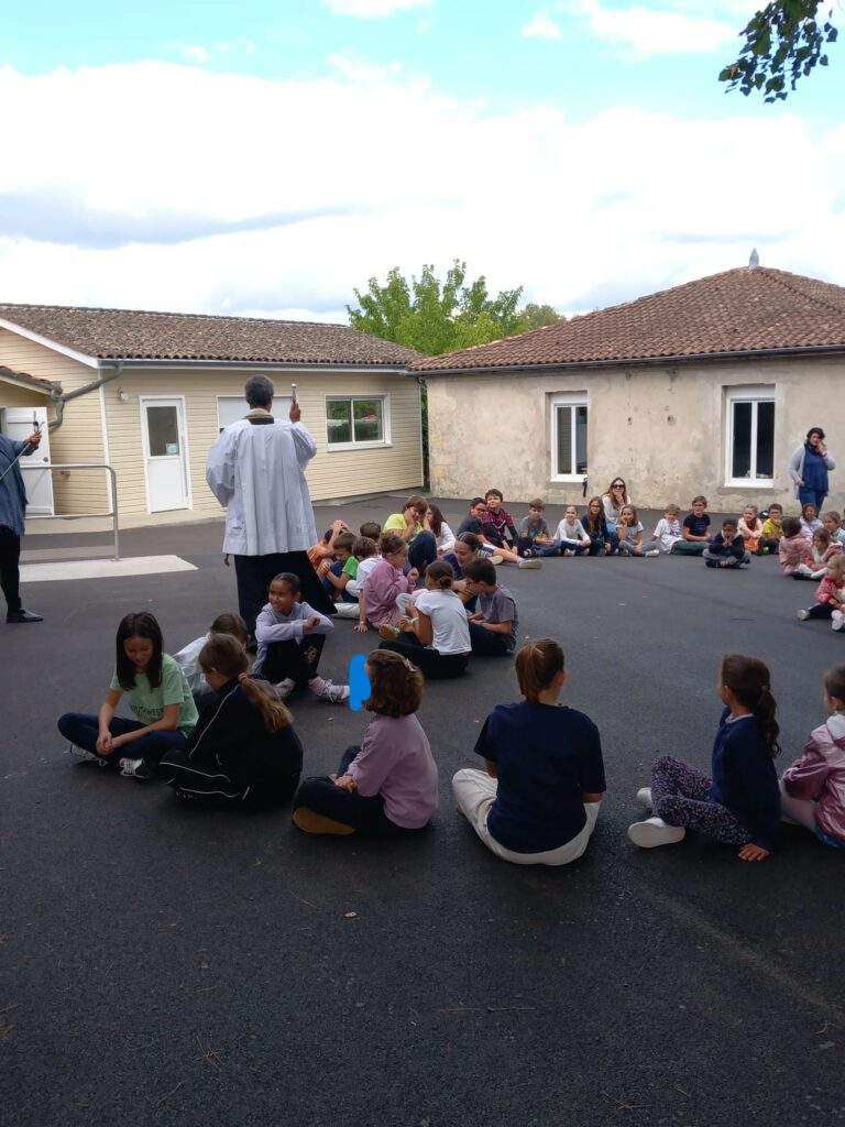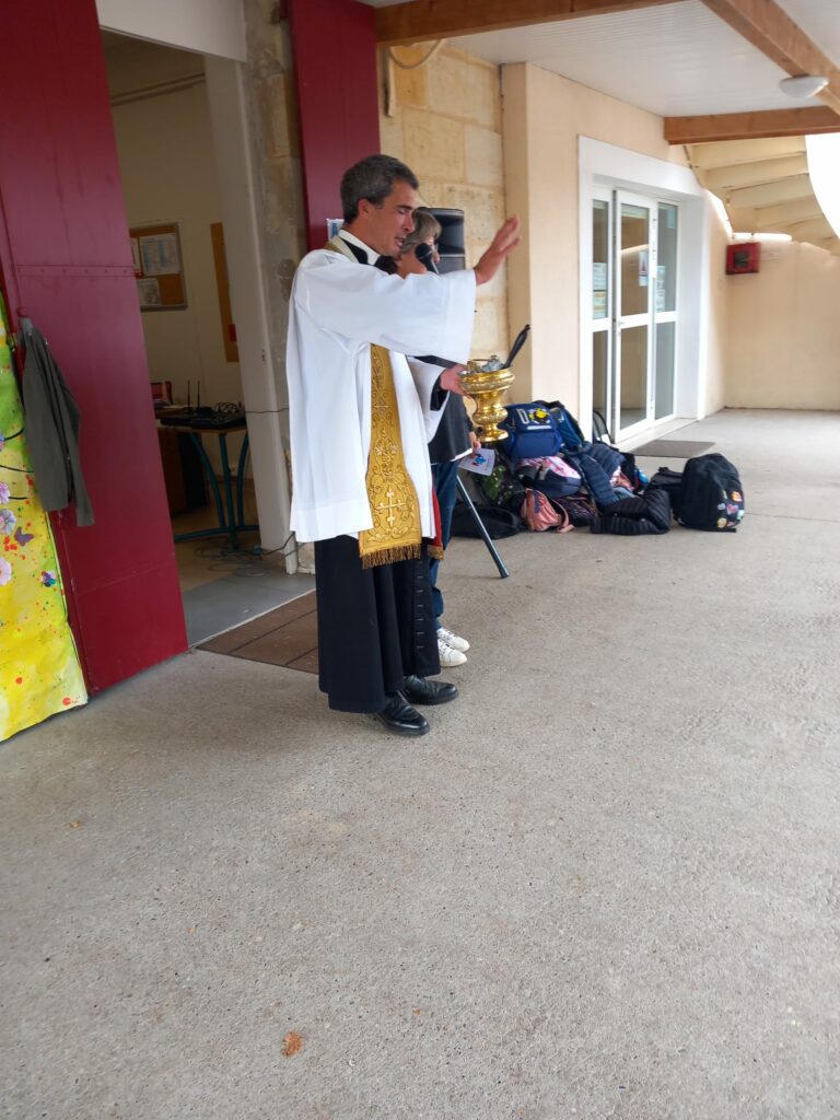 Ensuite le père Bertrand Catala est venu bénir les élèves et les adultes de l’école.