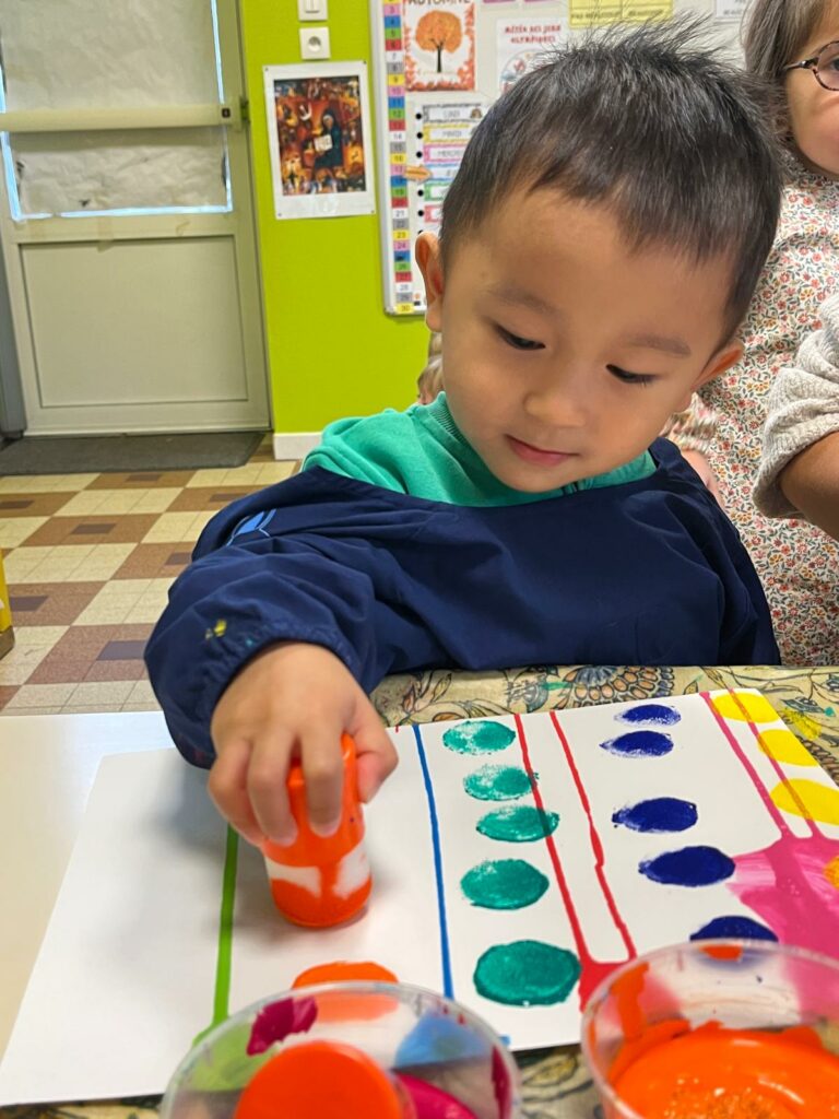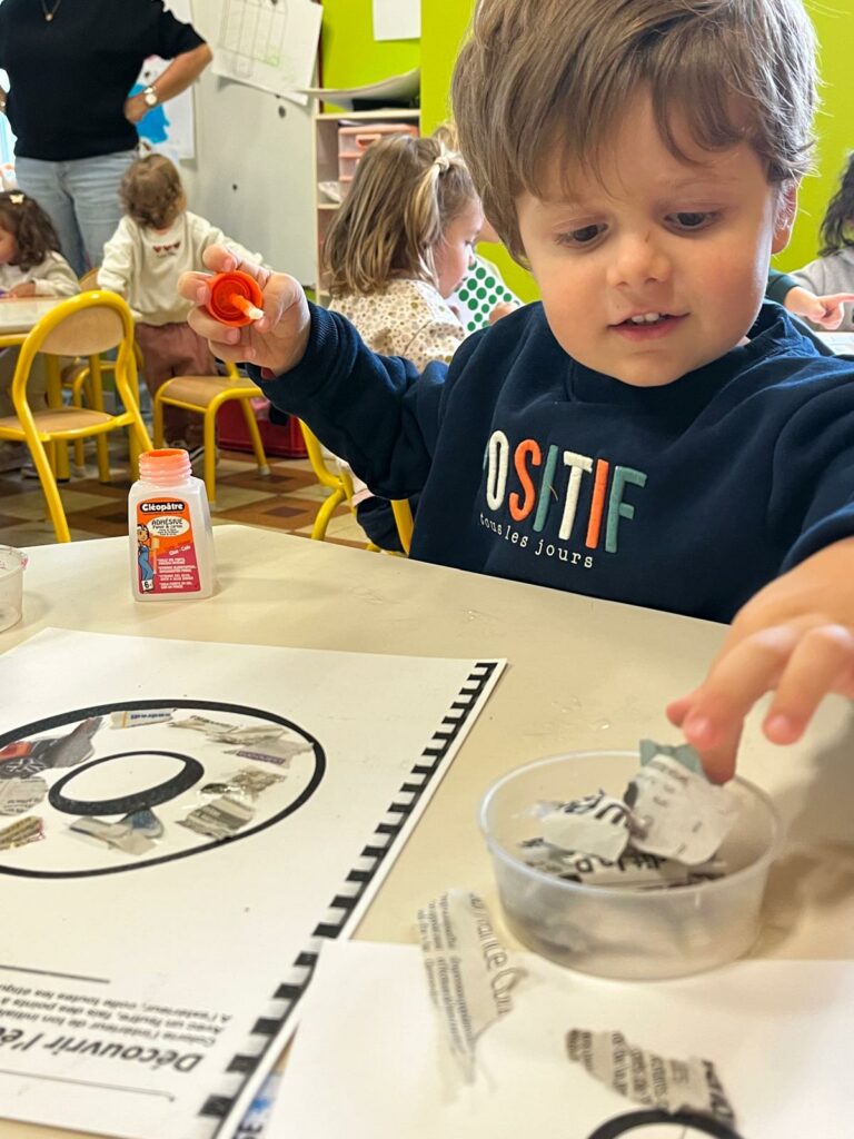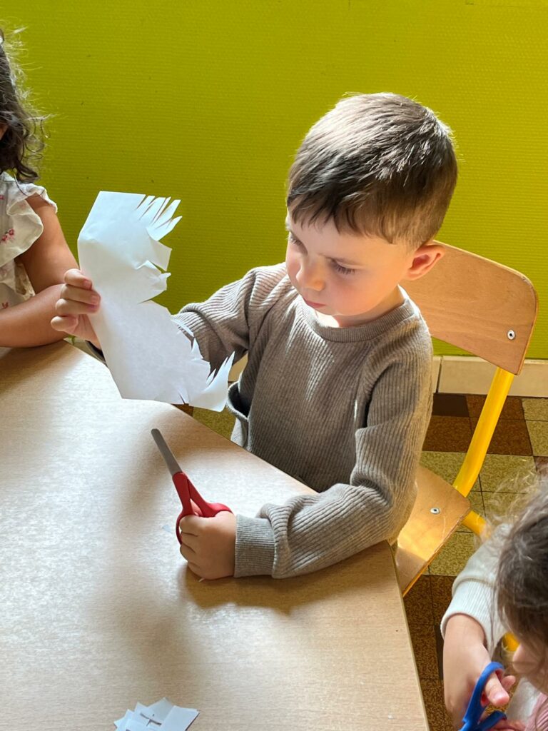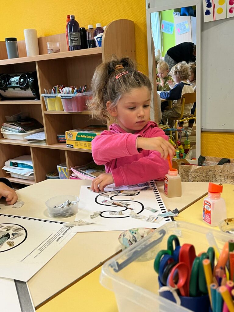 Ils ont fait du découpage, ils ont trié les couleurs, ils ont fait du coloriage, ils ont collé du papier journal pour décorer leurs initiales et ils ont fait de la peinture.