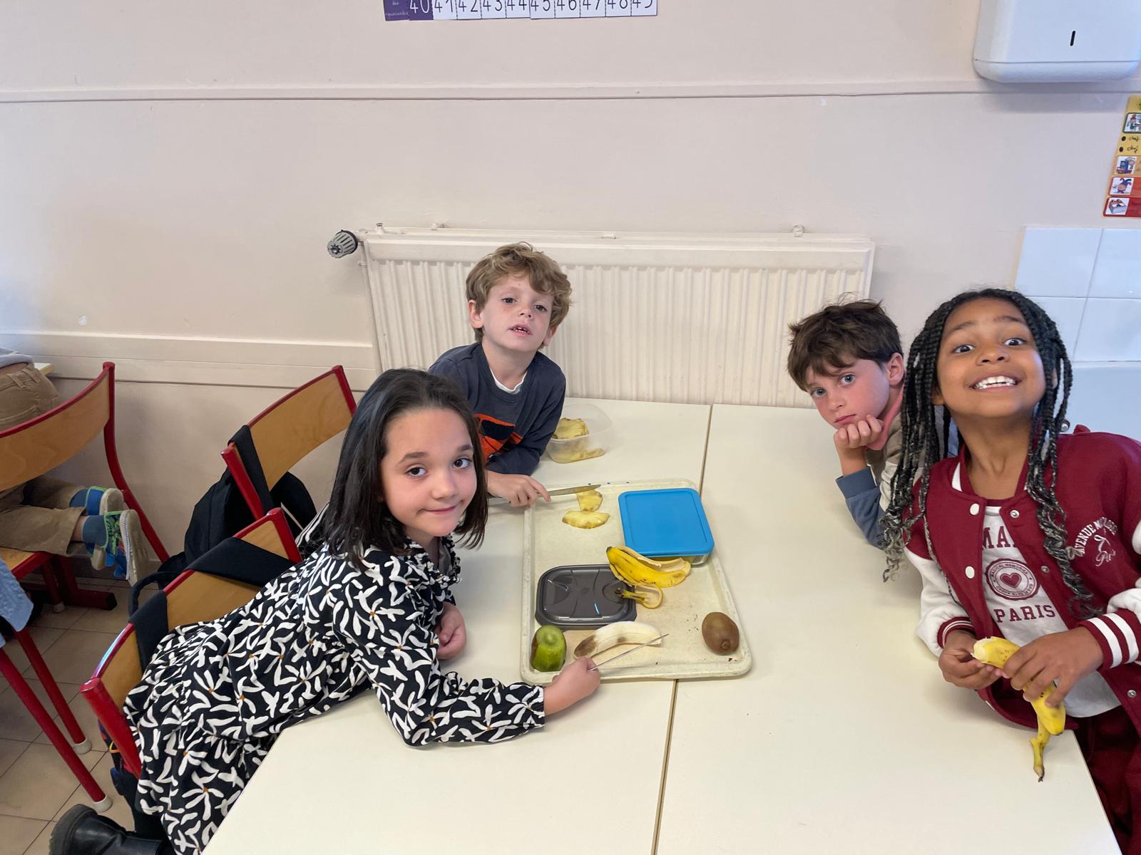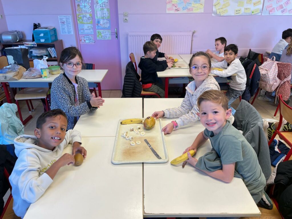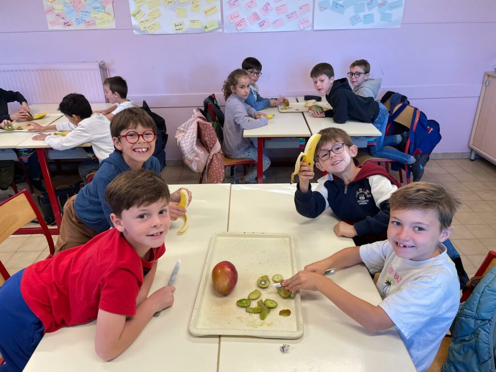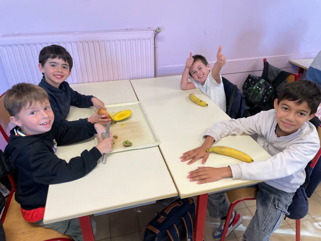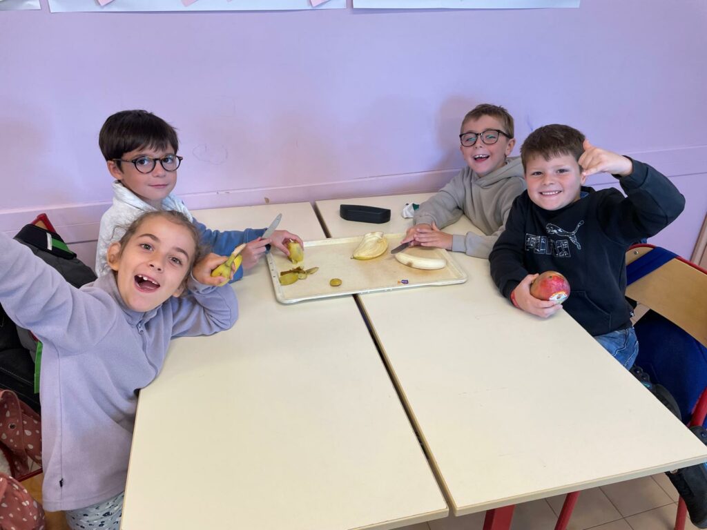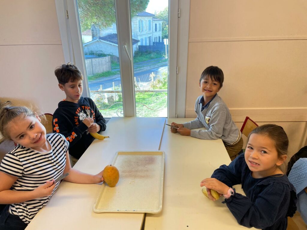 Les CE1 ont fait des smoothies à la banane, au kiwi, à la mangue et à l’ananas.
