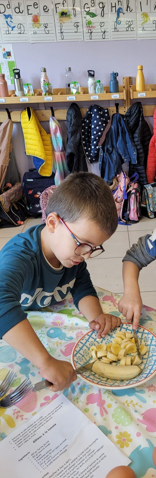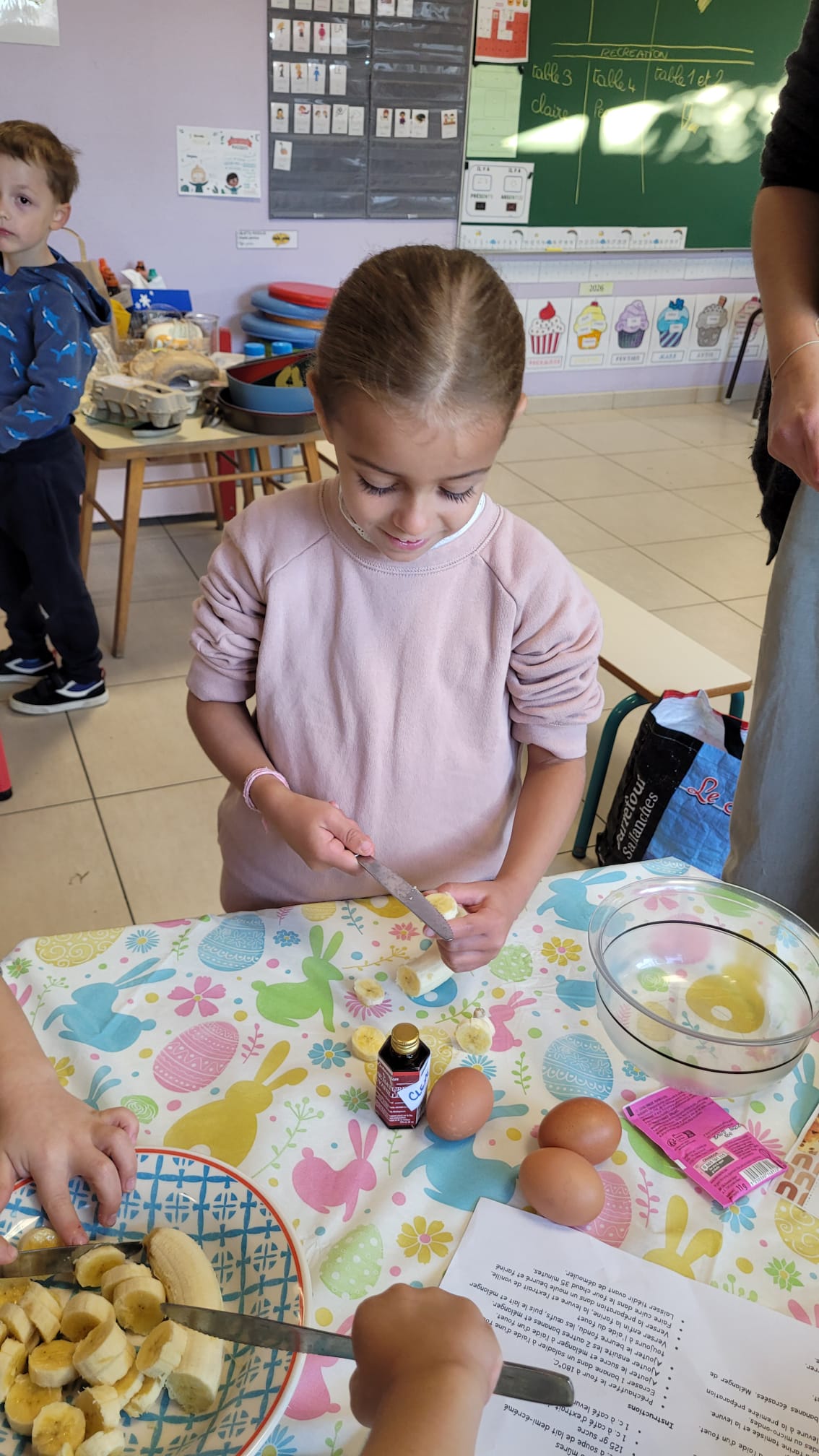 Les grandes sections ont fait un cake chocolat – banane et un gâteau à la banane.