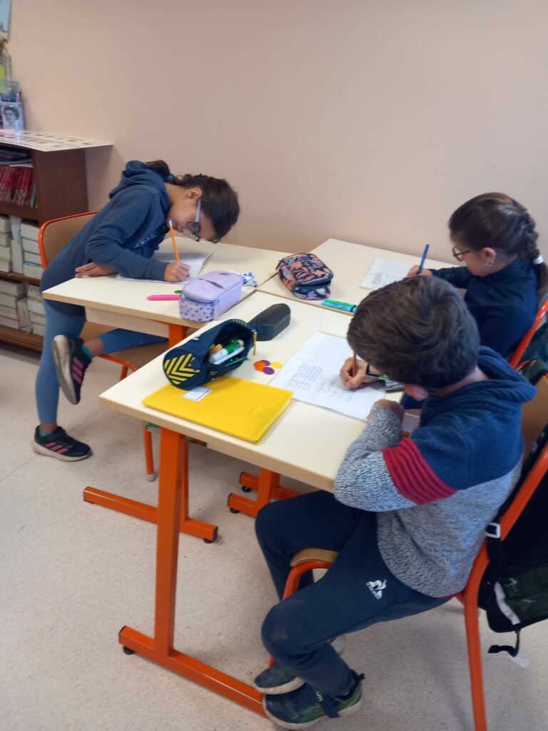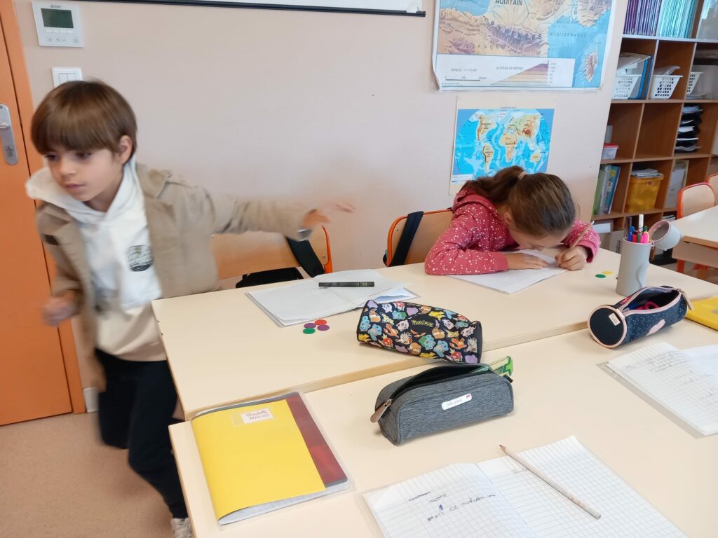 Pour préparer la dictée du lundi, les CE2 font un exercice de « dictée copie ». La dictée est affichée dans les 4 coins de la classe non visible. Ils ont chacun 6 jetons. Pour aller voir la dictée, ils doivent donner un jeton. Ils la regardent et doivent retourner à leur place en mémorisant le texte et l’orthographe. Il écrivent ensuite ce qu’ils ont mémorisé sur leur brouillon. Le but est d’en mémoriser de plus en plus. Cette activité leur a beaucoup plu et leur à permis de tester différentes techniques de mémorisation. Ainsi ils ont fortement progresser lors de la dictée du lundi!