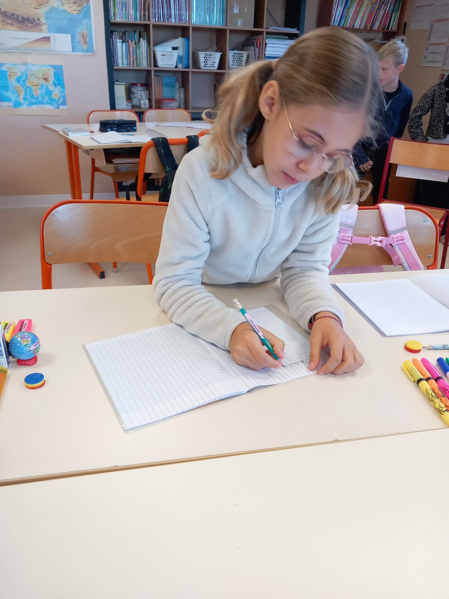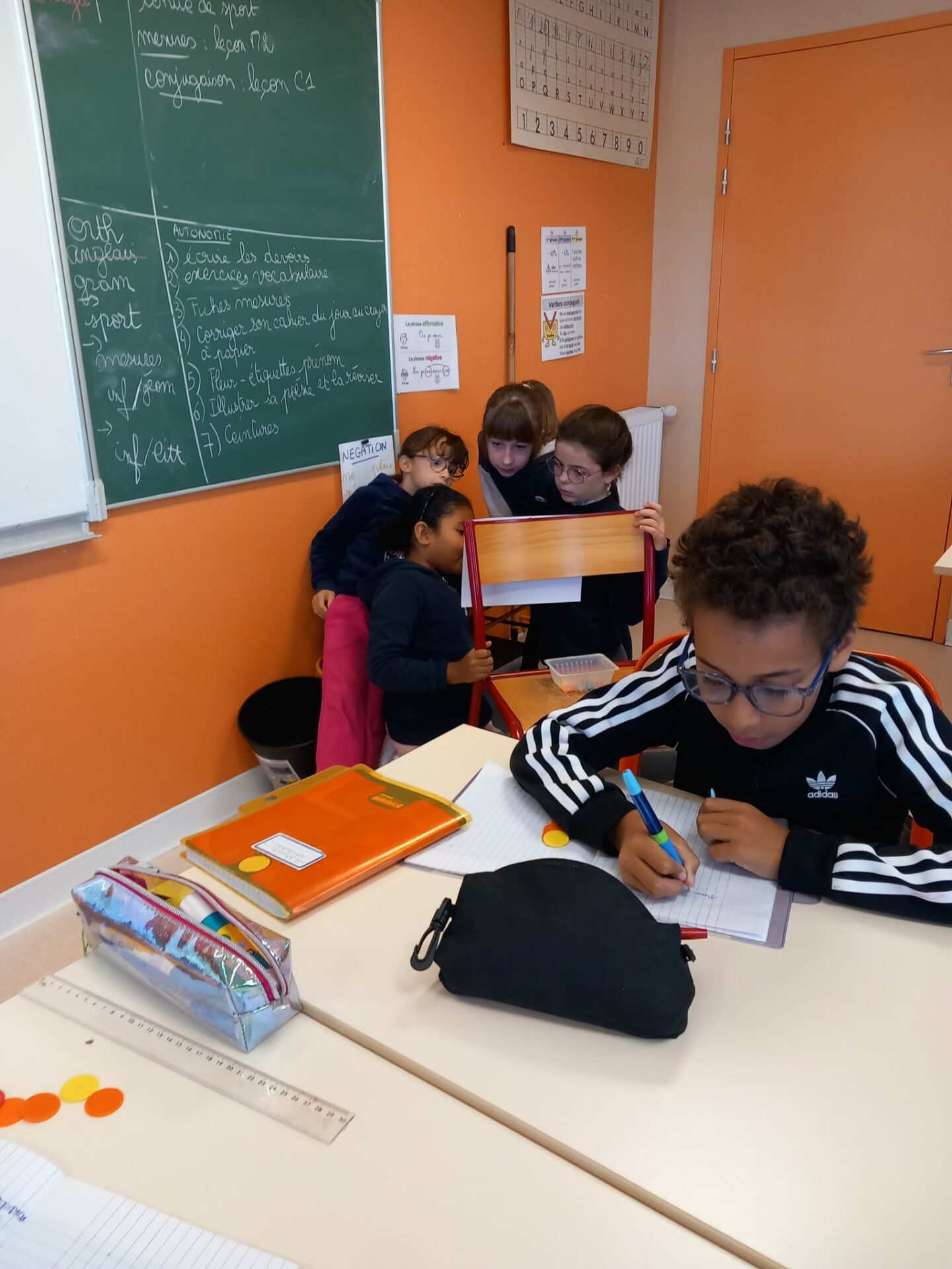 Pour préparer la dictée du lundi, les CE2 font un exercice de « dictée copie ». La dictée est affichée dans les 4 coins de la classe non visible. Ils ont chacun 6 jetons. Pour aller voir la dictée, ils doivent donner un jeton. Ils la regardent et doivent retourner à leur place en mémorisant le texte et l’orthographe. Il écrivent ensuite ce qu’ils ont mémorisé sur leur brouillon. Le but est d’en mémoriser de plus en plus. Cette activité leur a beaucoup plu et leur à permis de tester différentes techniques de mémorisation. Ainsi ils ont fortement progresser lors de la dictée du lundi!